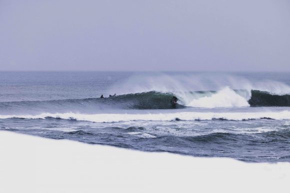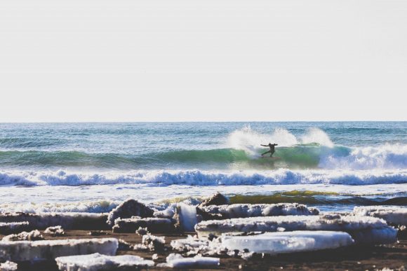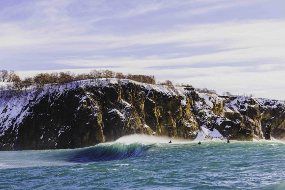 The cold was clearly half the fun for the group, as they chose to go in the long and brutally freezing winter of the region – which is frankly just an insane idea, especially considering they would surf and film in water that is one degree above freezing.