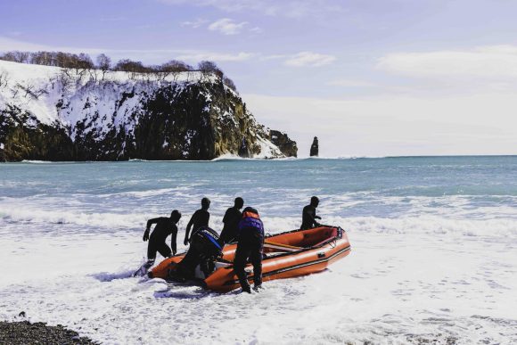 Speaking of danger, if you’ve never heard of the Kamchatka Peninsula and feel the need to look up what its known for, you’ll see ‘the abundance and size of its brown bear population’ and ‘the highest recorded density of brown bears on earth’. Guy said while they had been told there weren’t many bears or sharks there in winter, it didn’t stop them from looking over their shoulder when they were trekking through desolate mountain peaks and paddling in isolated oceans.