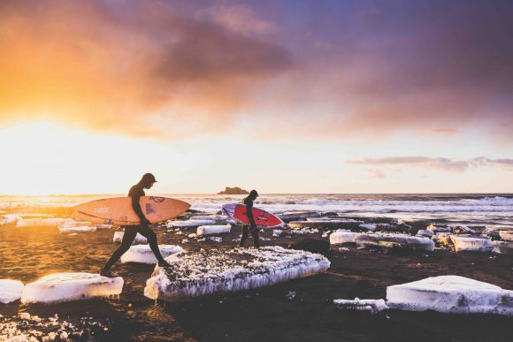 “Growing up, Spenny and I always filmed each other doing these little trips down to the coast. So, we got pretty excited to go to Iceland and try to find some good shots and awesome waves in a cold, unexplored landscape. We kind of didn’t know what we were doing when we got there. We just had a camera each and brought one of our mates, Fraser, who was a semi-pro surfer at the time. We ended up having the most amazing time and caught some wild waves. In 2019 we made a little 40-minute doco from that trip and toured a few surf film festivals. It did quite well, people really enjoyed it.